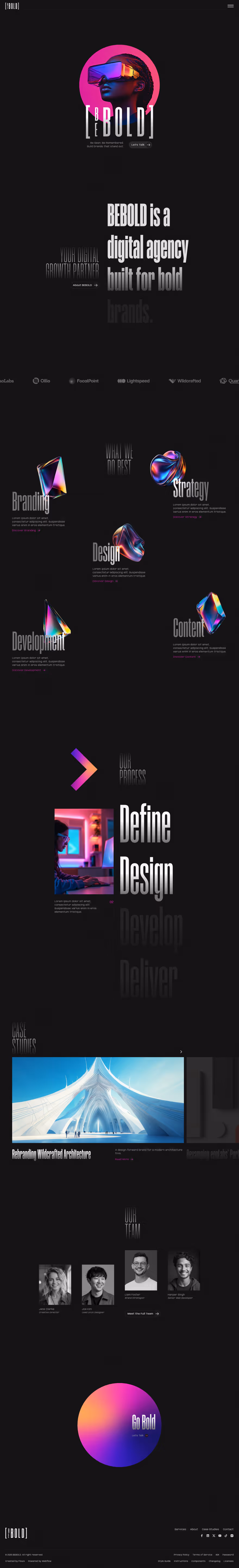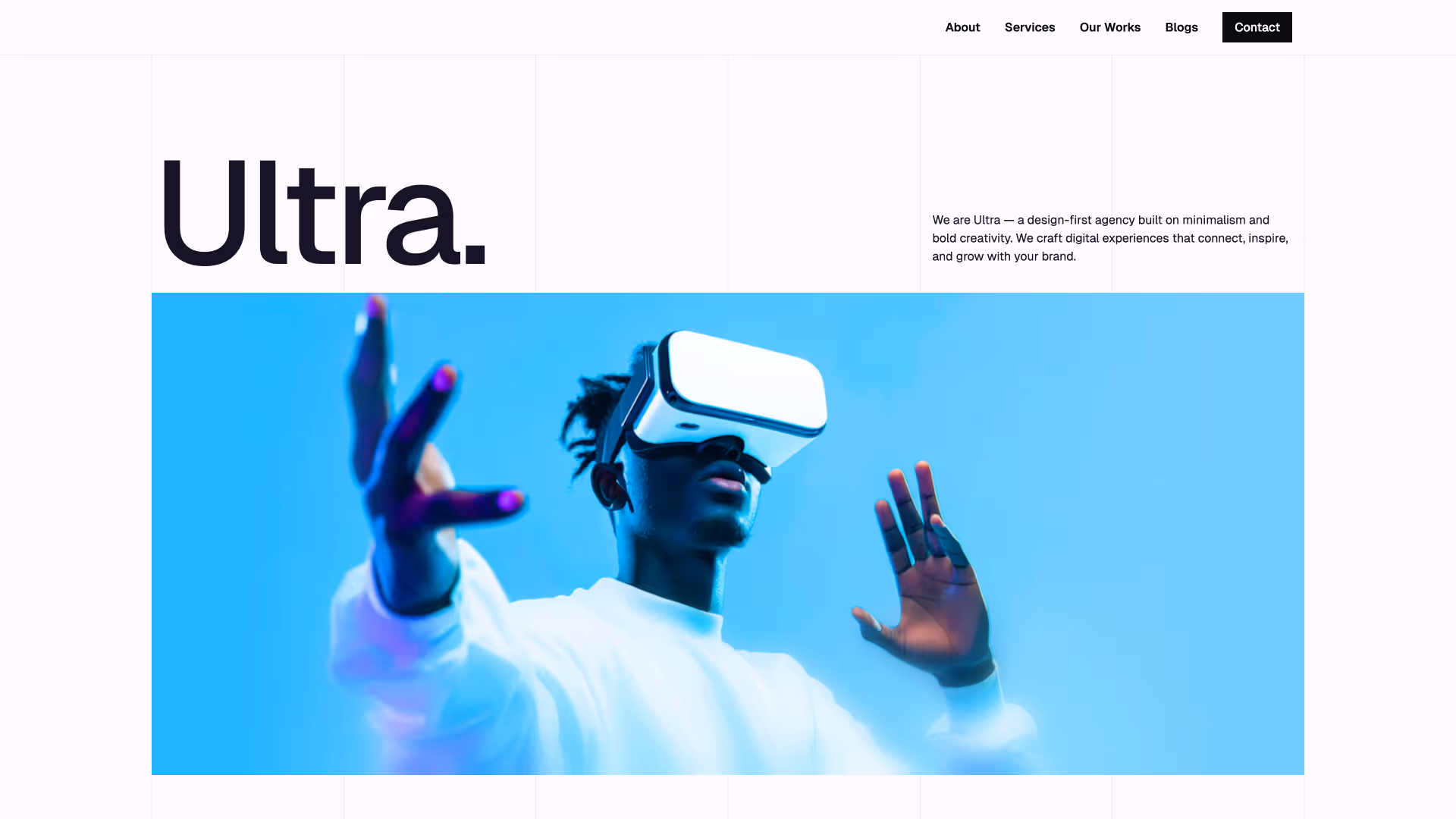 Clean, minimalist template with modern layouts, bold design, sophisticated animations, and a dark yet vibrant color palette — perfect for creative studios and marketing agencies.