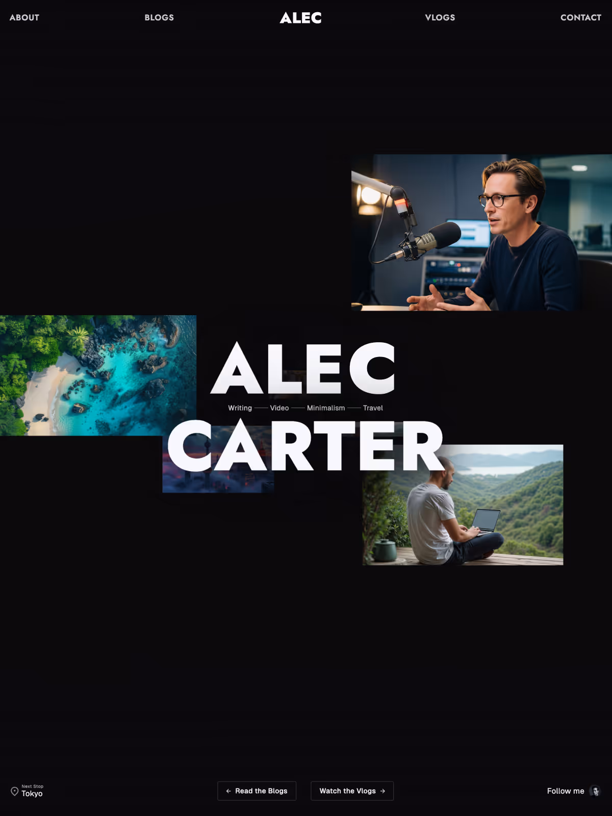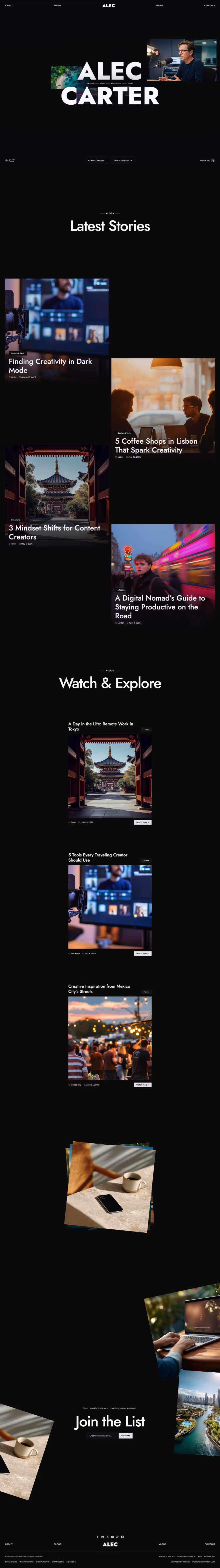 Alec is a sleek dark Webflow template for storytellers, bloggers, vloggers, and content creators. Featuring a CMS-powered blog and video hub, responsive layouts, global styles, and flexible components to showcase content with style and clarity.