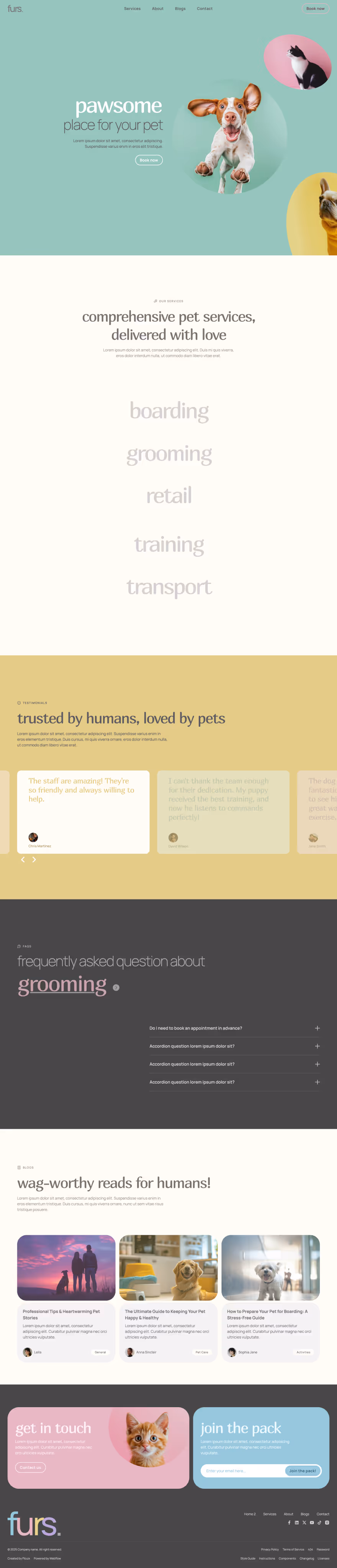 Perfect for veterinary, pet-related care, shops and services. A fun and playful style, with colorful and vibrant tones — all wrapped in a clean, minimalistic design.