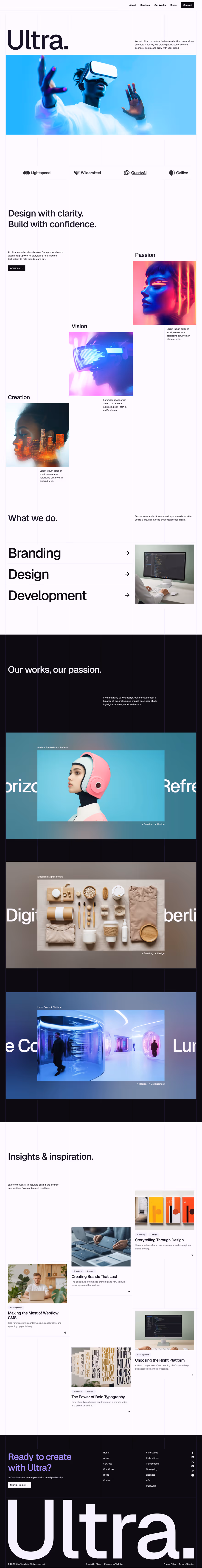 Ultra combines clean aesthetics with strategic design. Perfect for agencies, studios, and creatives to present portfolios, services, and content with a professional, timeless style that grows with your brand.