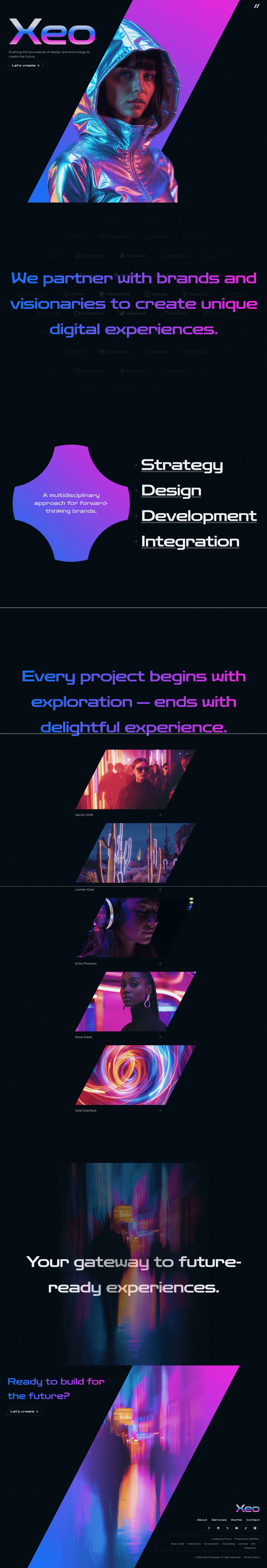 Xeo is a cyber-minimal, dark Webflow template built for creative studios, digital agencies, startups, SaaS, and technologists. Perfect for portfolios, product websites, case studies, and future-ready design and technology brands.